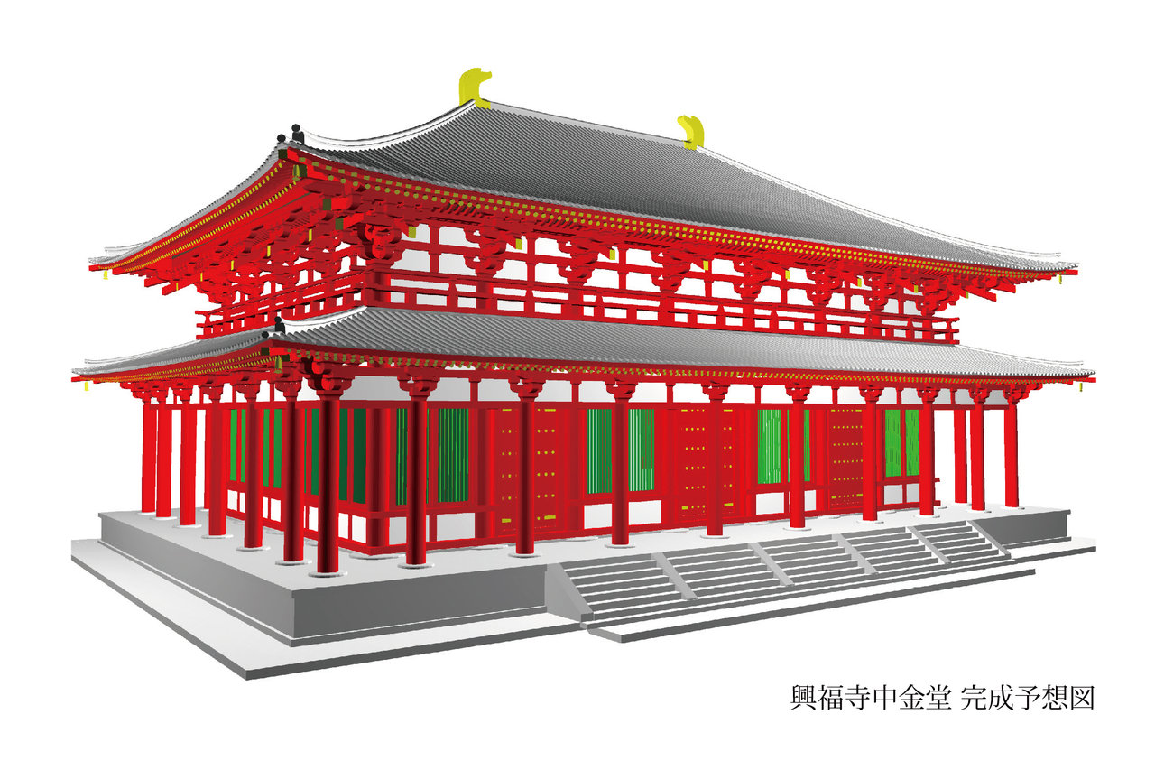 興福寺伽藍の中でも最も重要な建築物である中金堂は、714年に創建以来7回の焼失と再建を繰り返しました。江戸時代に仮堂として再建された堂は、本来の姿からは遠く、また老朽化が進んだ為2000年に解体されました。