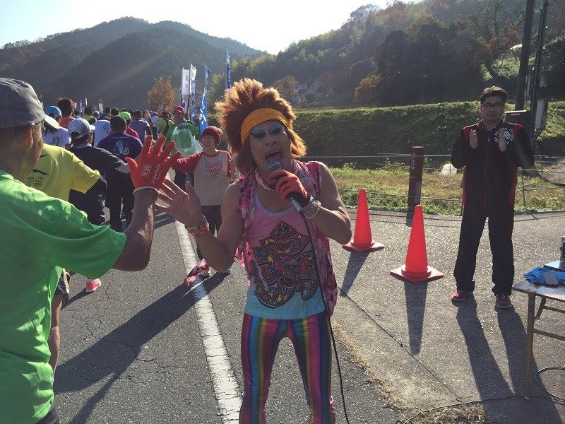 快調快調❗もうすぐハーフ。じゃあ、あの友人がいる ❗そう、昨年も逢ったNAOTO君が待ってくれてる!あれ?どこやろ?と思い走り過ぎた頃『もっちゃーん ‼ 』 振り返って見つけて、逆走してハグしましたわ。ゼリーや、飴をポケット一杯もらって、元気もらってあと半分!いや、半分もあるんか…。