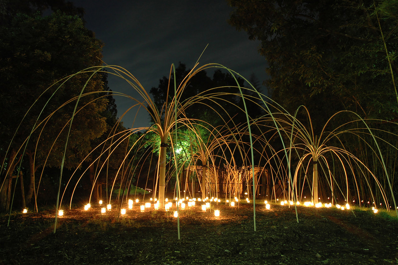 彫刻家・長谷川政弘氏がデザイン、地元産業組合が制作を担当する竹の造形作品を園内に展示、ロウソクの灯りで照らし出します。奈良芸術短期大学の学生がデザインした作品も登場。10月8日のみ17:00より点灯式を開催、尺八と三味線のオープニングコンサートも。