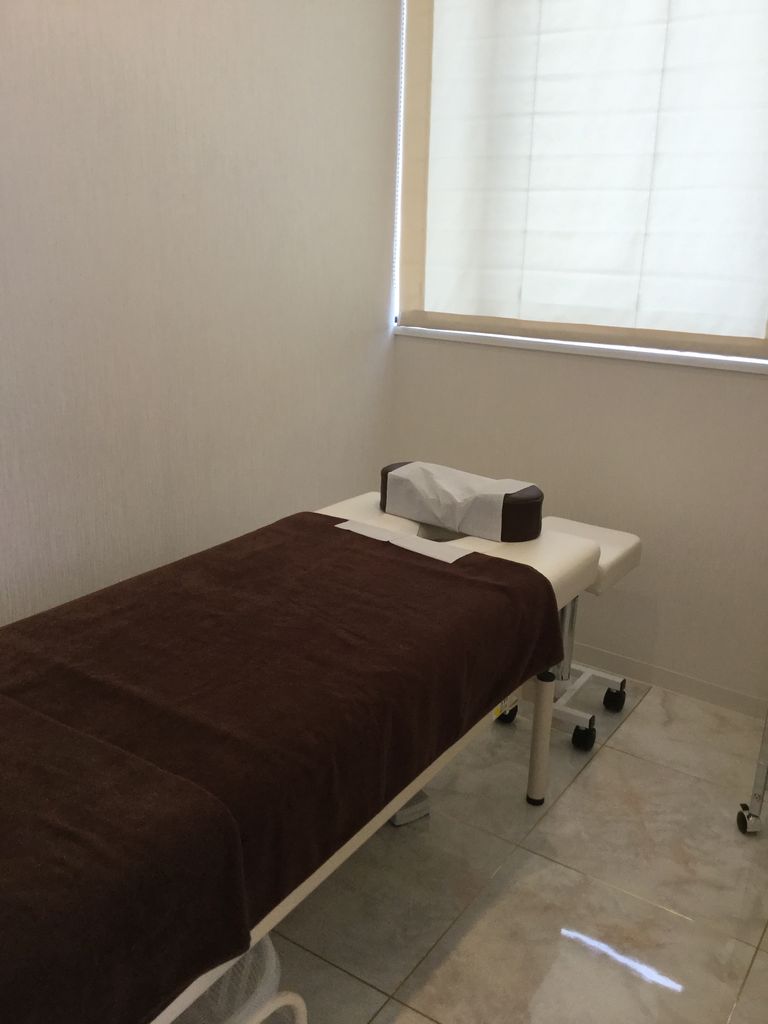ホワイトとブラウンを貴重とされた施術室でとても落ち着きます