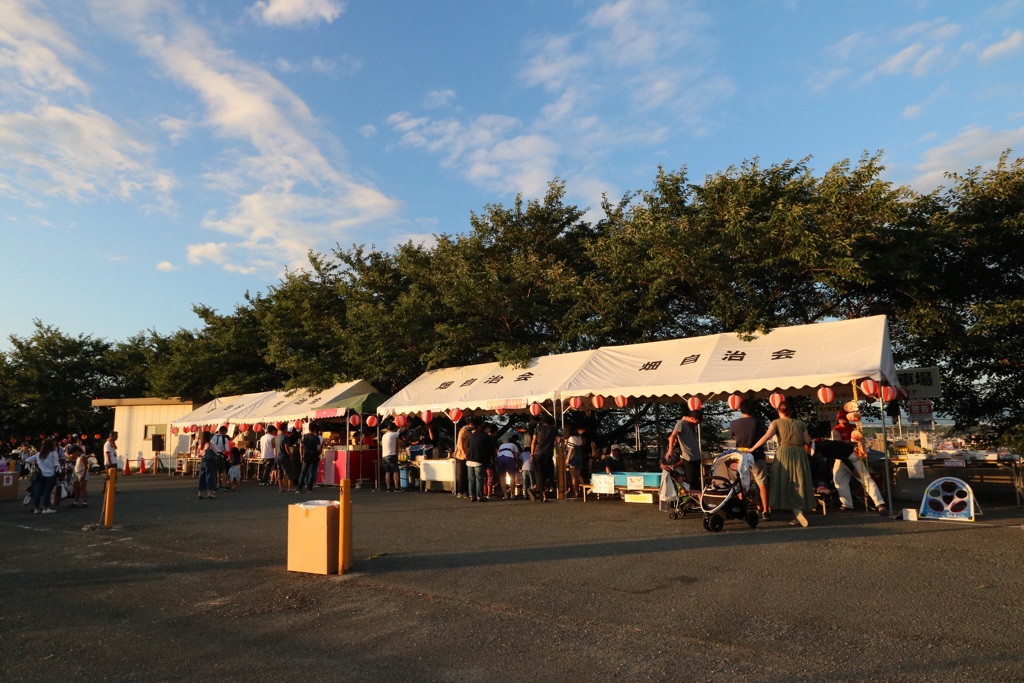池の対岸が見やすいそうです。模擬店は13:00〜開いてます。