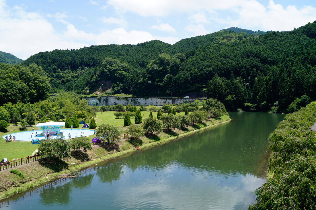 名阪国道・針インターから車で約20分。空の青と山の緑の美しさに、何度も深呼吸をしたくなる公園です。バーベキュー場には屋根があり、急な雨も大丈夫。炭の後始末は公園に任せられるので、小さな子どもを連れたママだけのグループでも手軽に炭焼きの香ばしさが楽しめるところがGOOD!バーベキュー場の予約は日曜より土曜が狙いめ。スポーツ広場では学生が野球やサッカーで汗を流し、水糸の滝では子ども達が歓声とともに水しぶきをあげ、とっても楽しそう。恐竜の体内を模した大型アスレチック遊具も遊びごたえ抜群です。