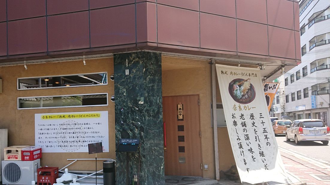 奈良では夜になると早く閉めちゃうお店が多いですが、夜の方が活気のある街の一つが杉ケ町。そこにカレーうどん屋さんが出来たと聞き、行ってみました。