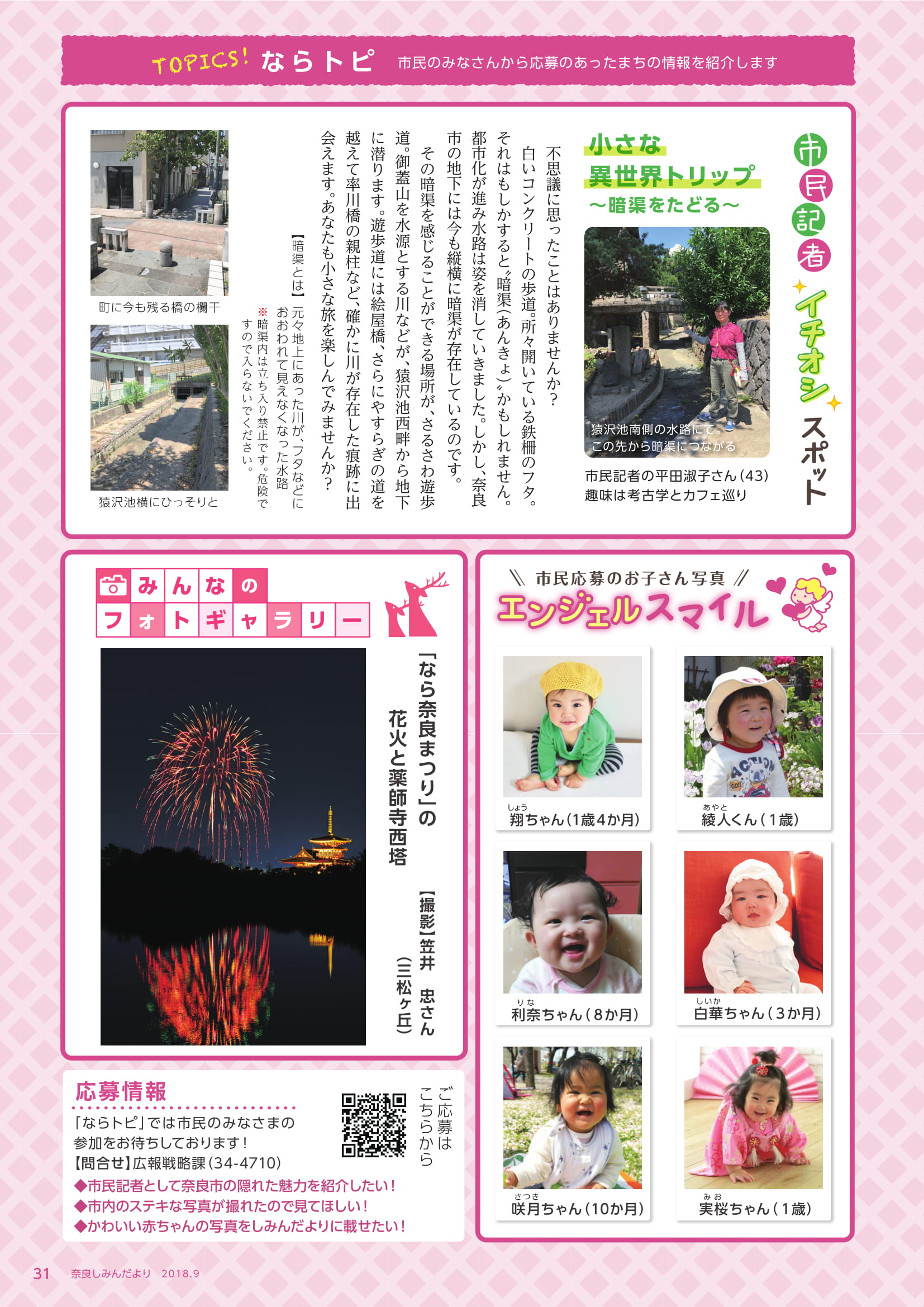 市民が参加して奈良市のトピックスを紹介する参加型ページとし以下のコーナーを設けました。