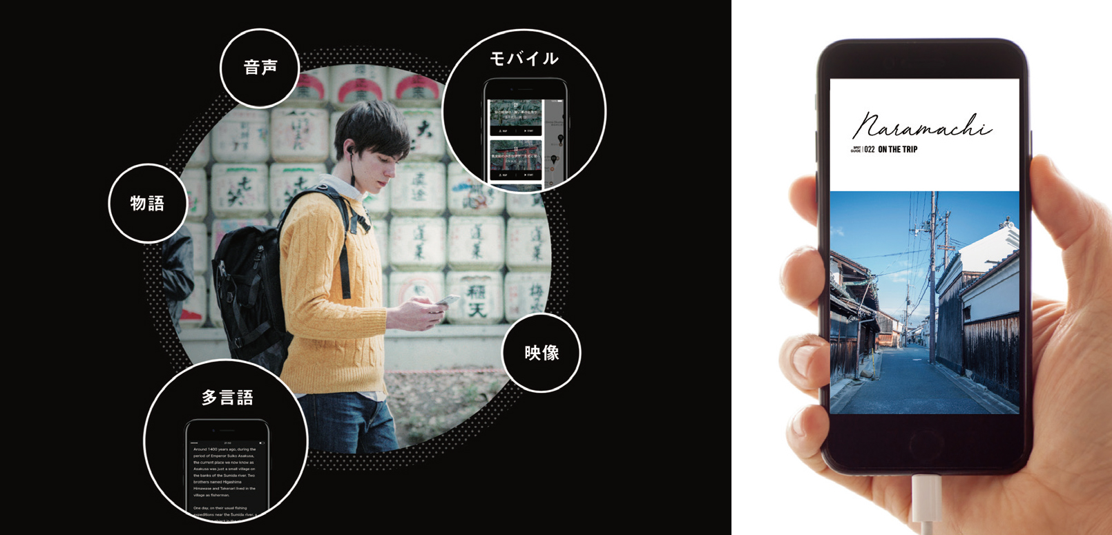 “ON THE TRIP”とは、その土地や文化財の物語を、地図に予めマッピングされた箇所を巡りながら楽しむオーディオガイドアプリです。