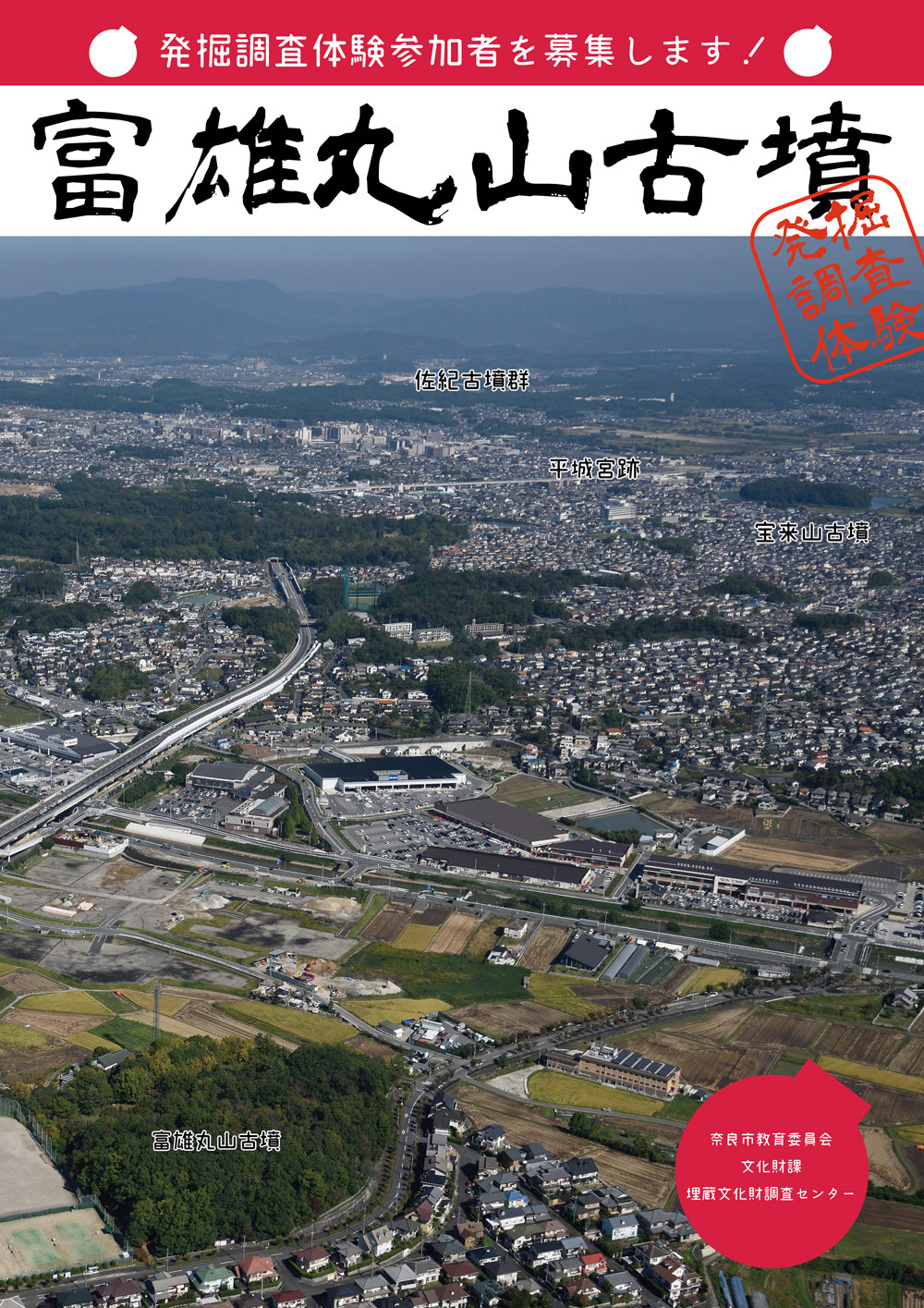 この事業は、日本最大級の円墳という奈良市ならではの文化資源を利用し、発掘調査体験を通して古墳や文化財への関心を高めて頂く教育学習資源として活用を図るものです。