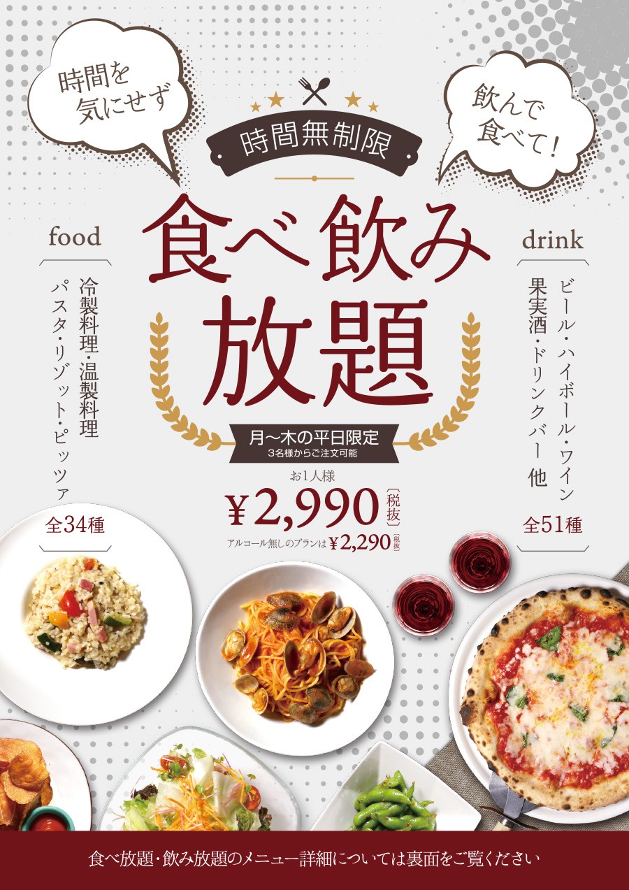 食べ飲み放題を販売(予約不要)