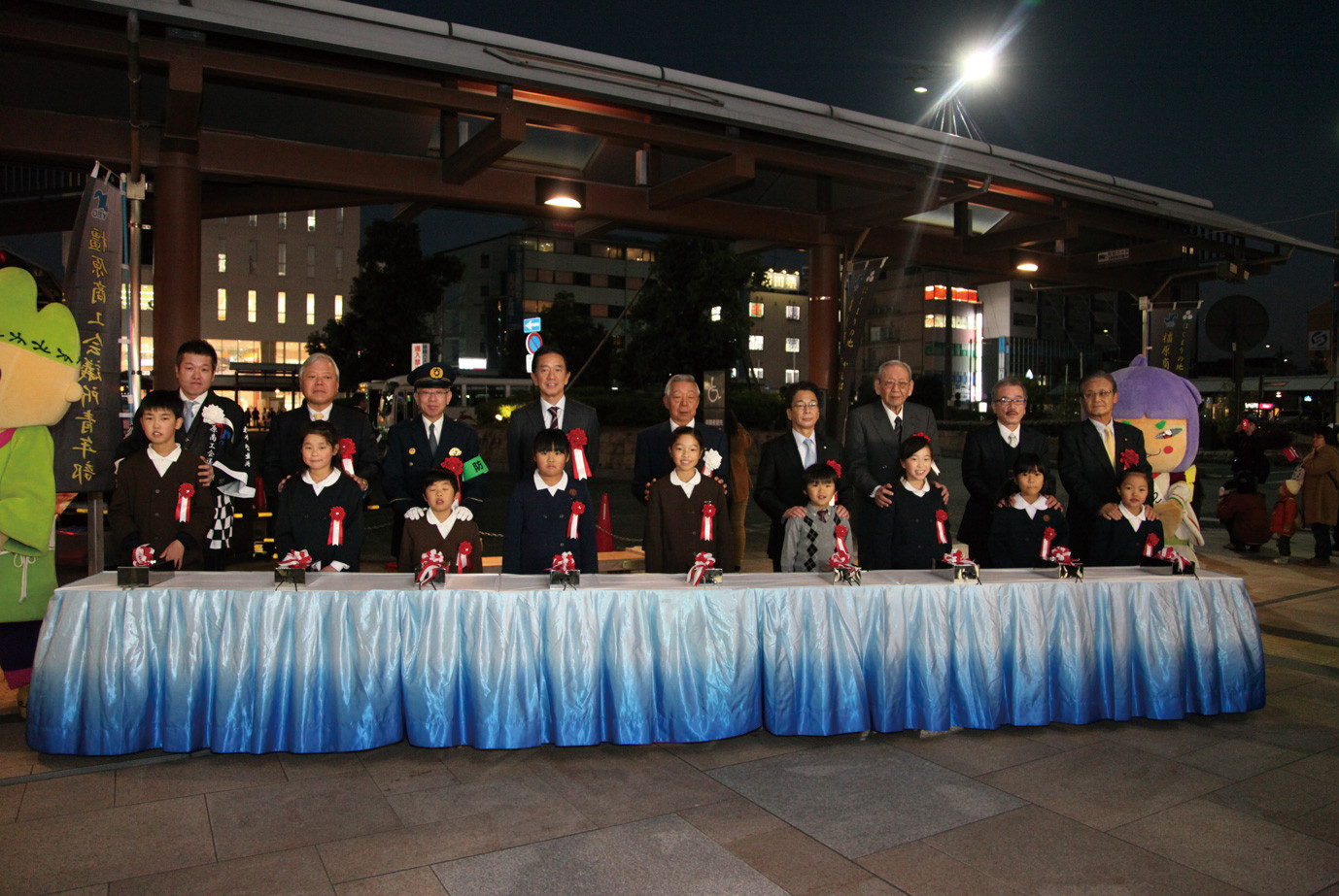 来賓挨拶・来賓と市内小学生による点灯