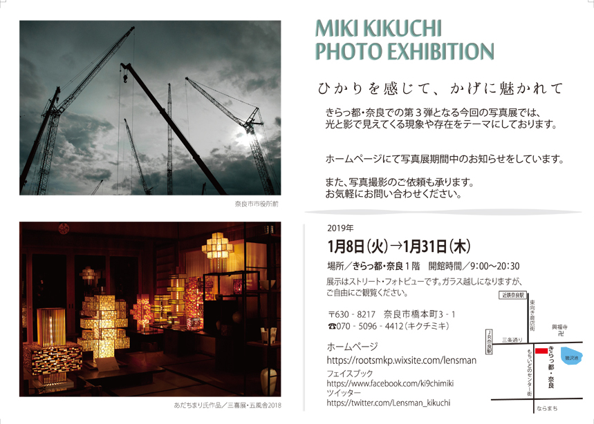 昨年9月より継続しているキクチミキ写真展が本年1月中も引き続き開催されます。