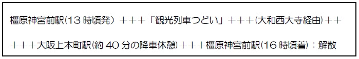 行程/添乗員は、集合の橿原神宮前駅から解散の橿原神宮前駅まで同行します。