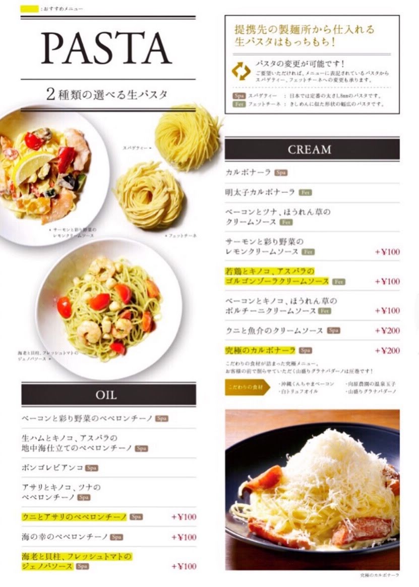 窯焼きピッツァや生パスタなどがいただけます。