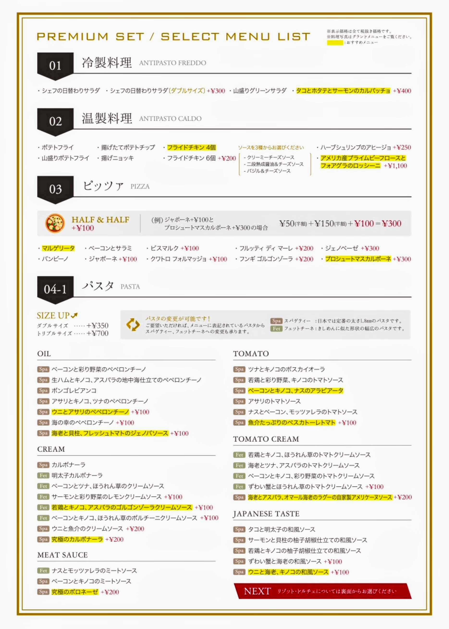 ★PREMIUM SET(ランチ、ディナー共に可)