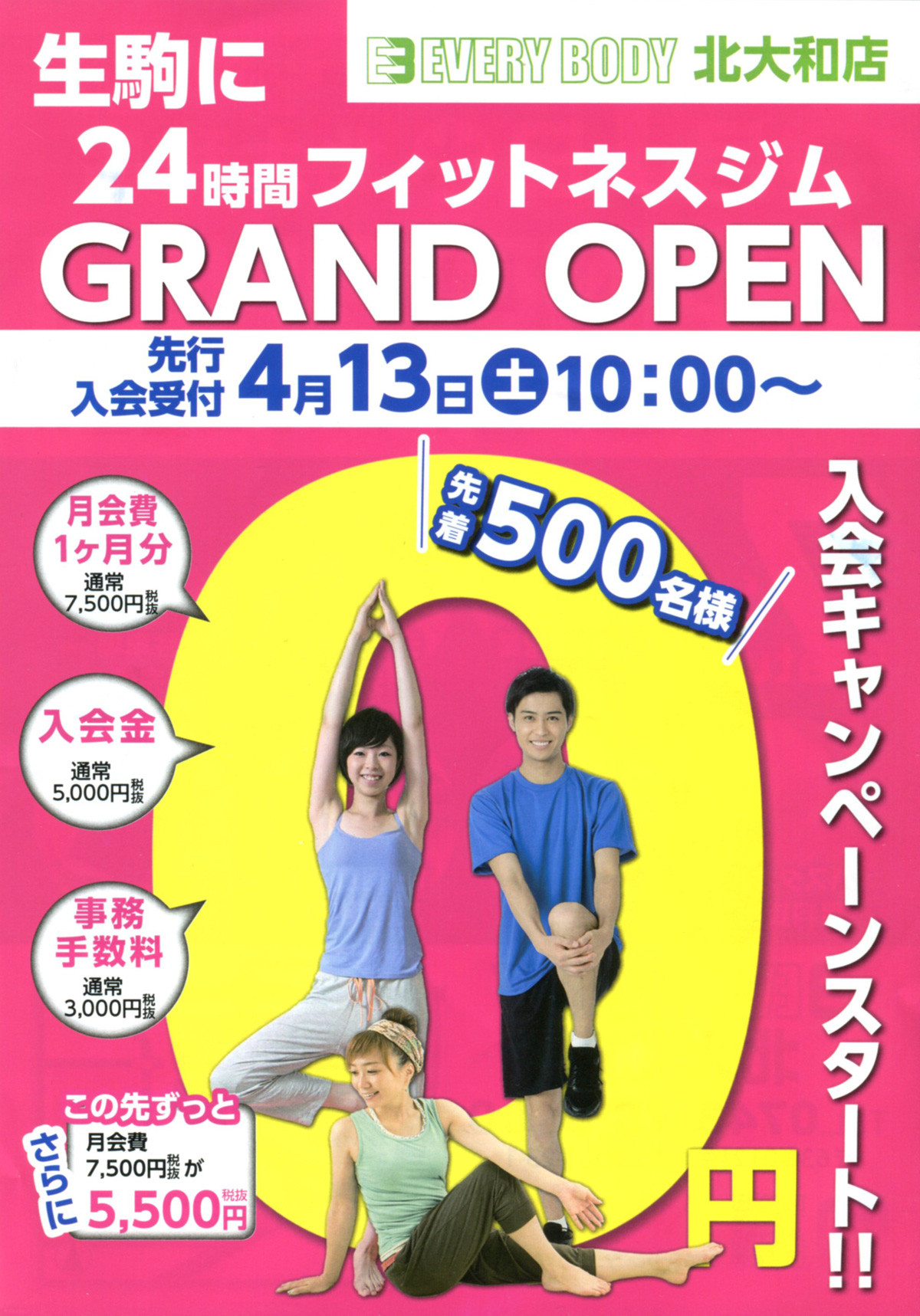 生駒市北大和のスーパーヤオヒコがある建物内に、24時間フィットネスジム「EVERY BODY北大和店」がオープンするそうです。
