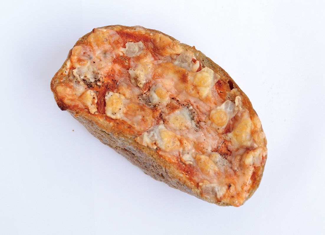 有機豆乳をくぐらせたパンに、自家製トマトソース、豆乳マヨネーズ、豚肉をトッピングしたオープンサンド。