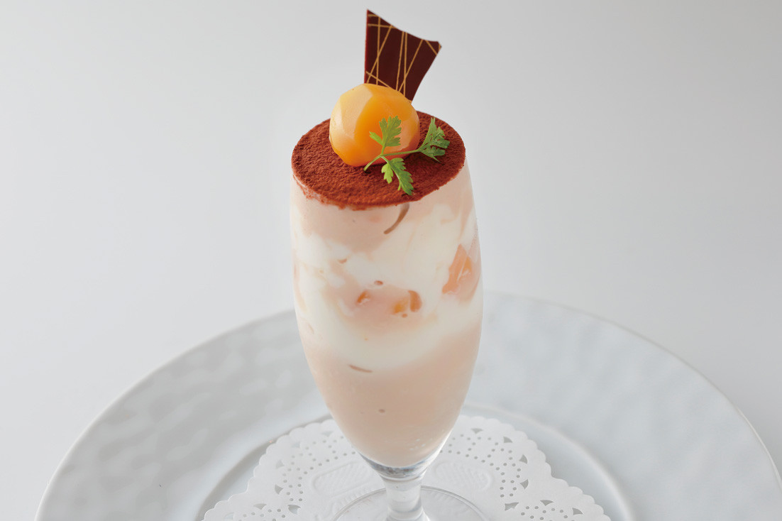 今年から新発売で一番人気。下からロイヤルミルクティーアイス、ブランマンジェ&栗、マロンアイスと、幸せが層になっています。ココアパウダー、栗とチョコをトッピングで。