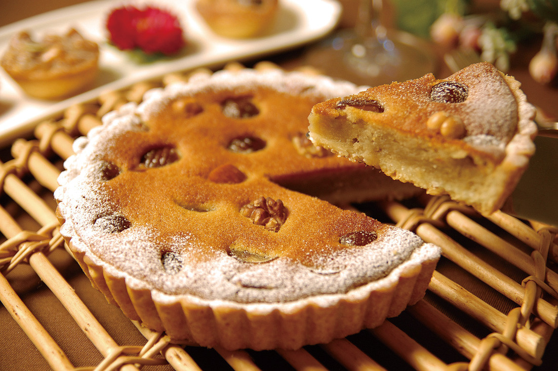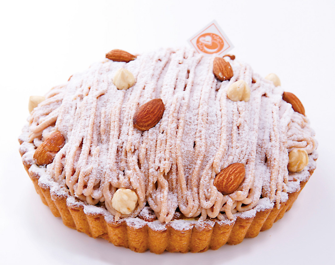 マロンペーストを混ぜ込んだサクサクのタルト土台と、中には丸ごとの栗で秋を満喫。