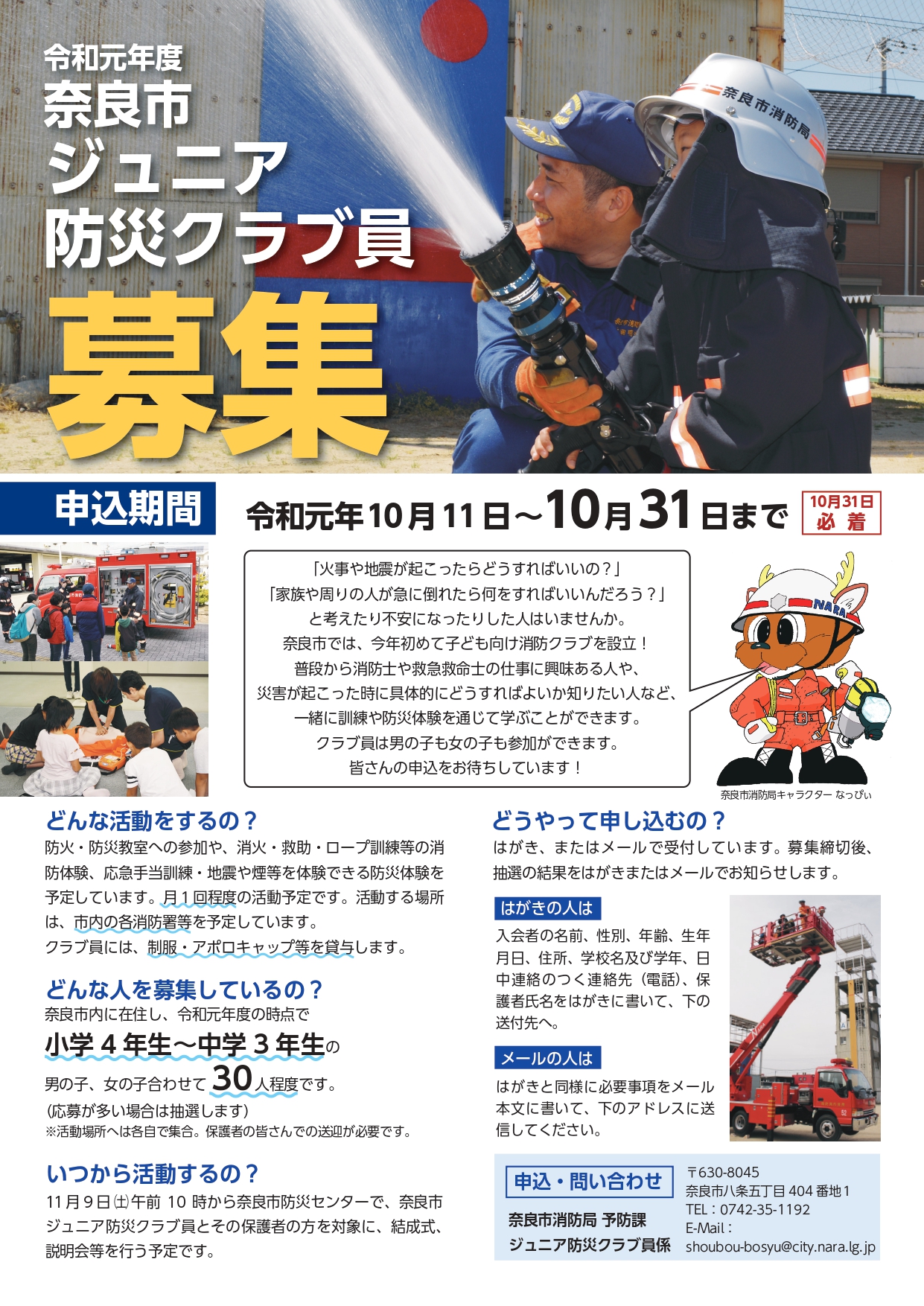 奈良市消防局予防課 ジュニア防災クラブ員係