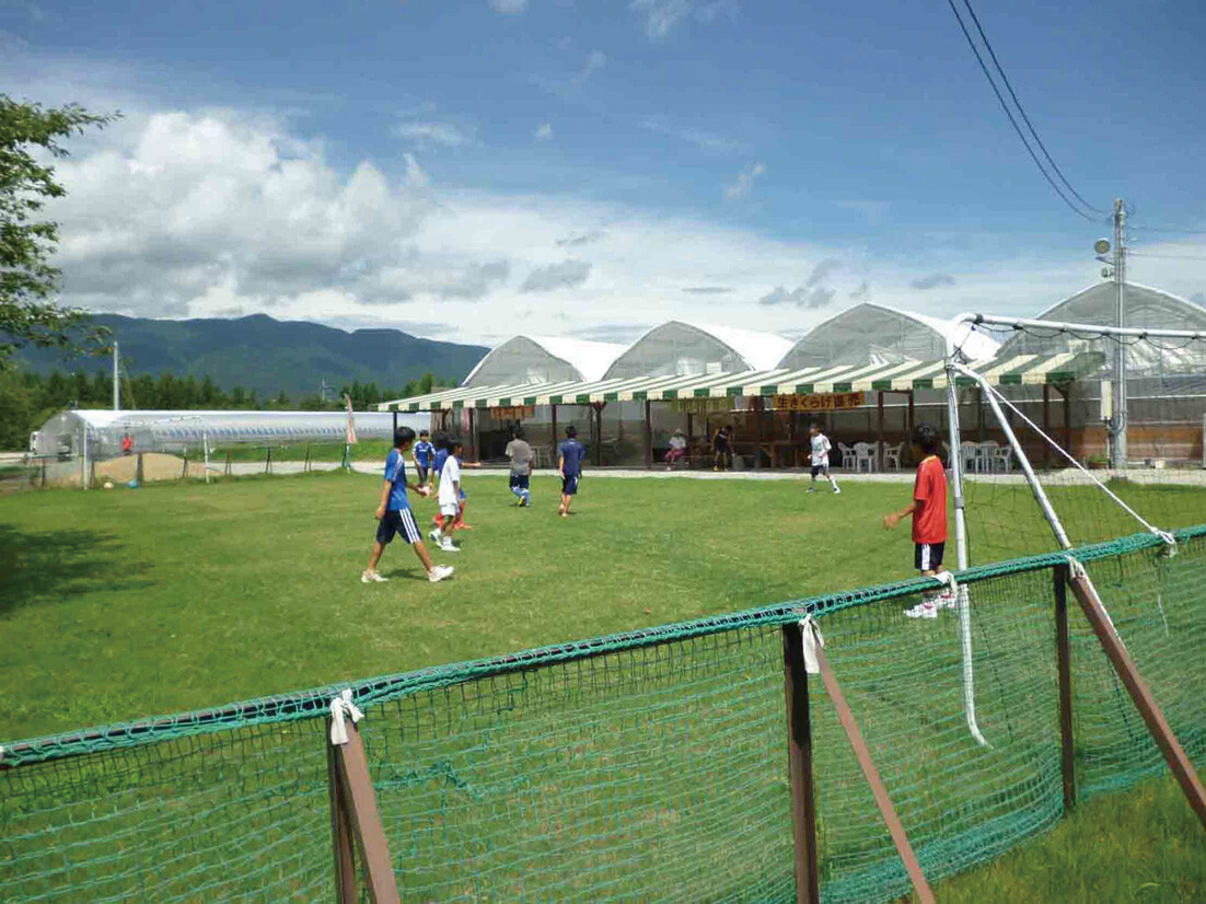 あだみね高原ファームは、いちご狩り以外にも楽しみ方もいろいろ。芝生が気持ちいいフットサル場で遊んだり、バーベキューやお花見、ミニアスレチックなどもあり。森と遊ぶ休日を、のんびり楽しんでみては。