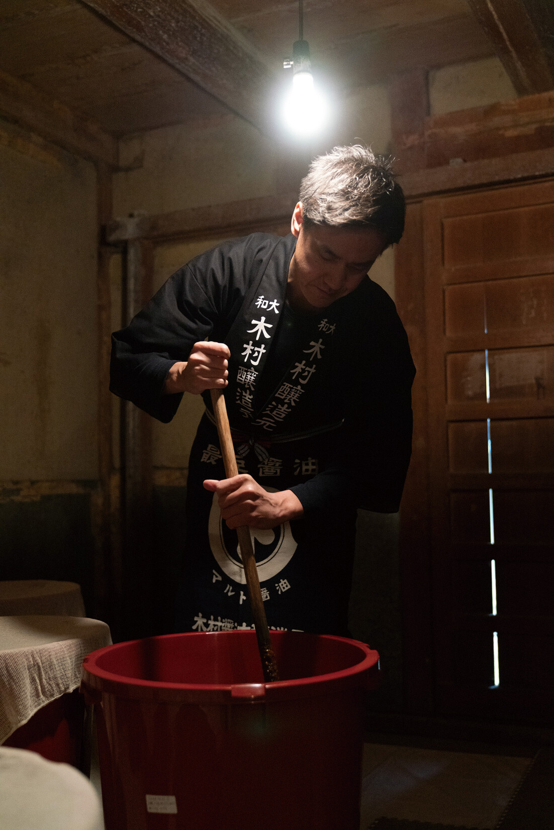 それから70年を経たいま、孫にあたる18代目当主・木村浩幸が、蔵に残されていた古文書を読み解き、醤油づくりに挑戦。伝統の製法を探り続けるうち、70年ぶりに蔵付き菌が生き続けていたことを発見し、醤油復活を目指して試験醸造を続けています。