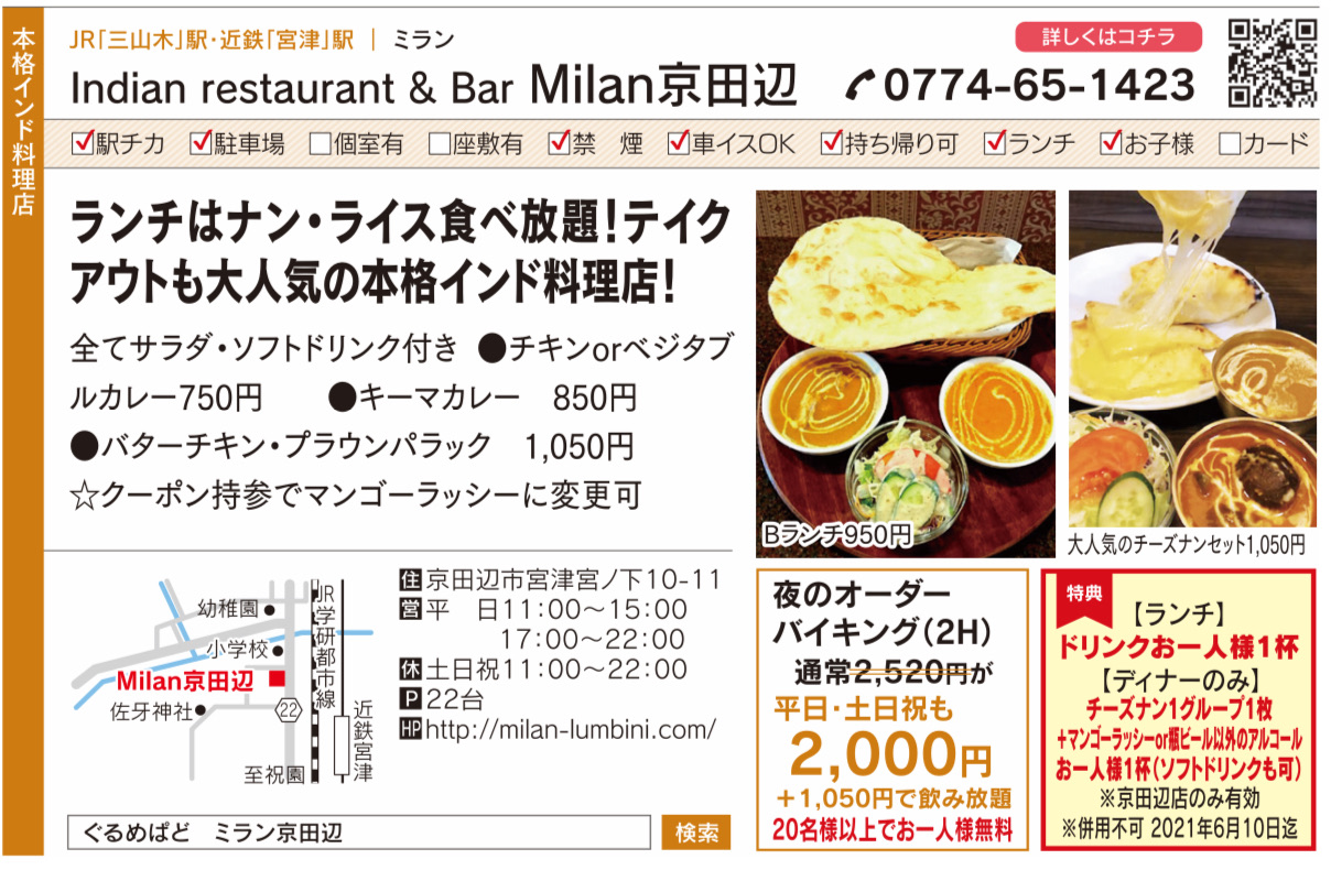 ※京田辺店のみ有効 ※併用不可 2021年6月10日迄
