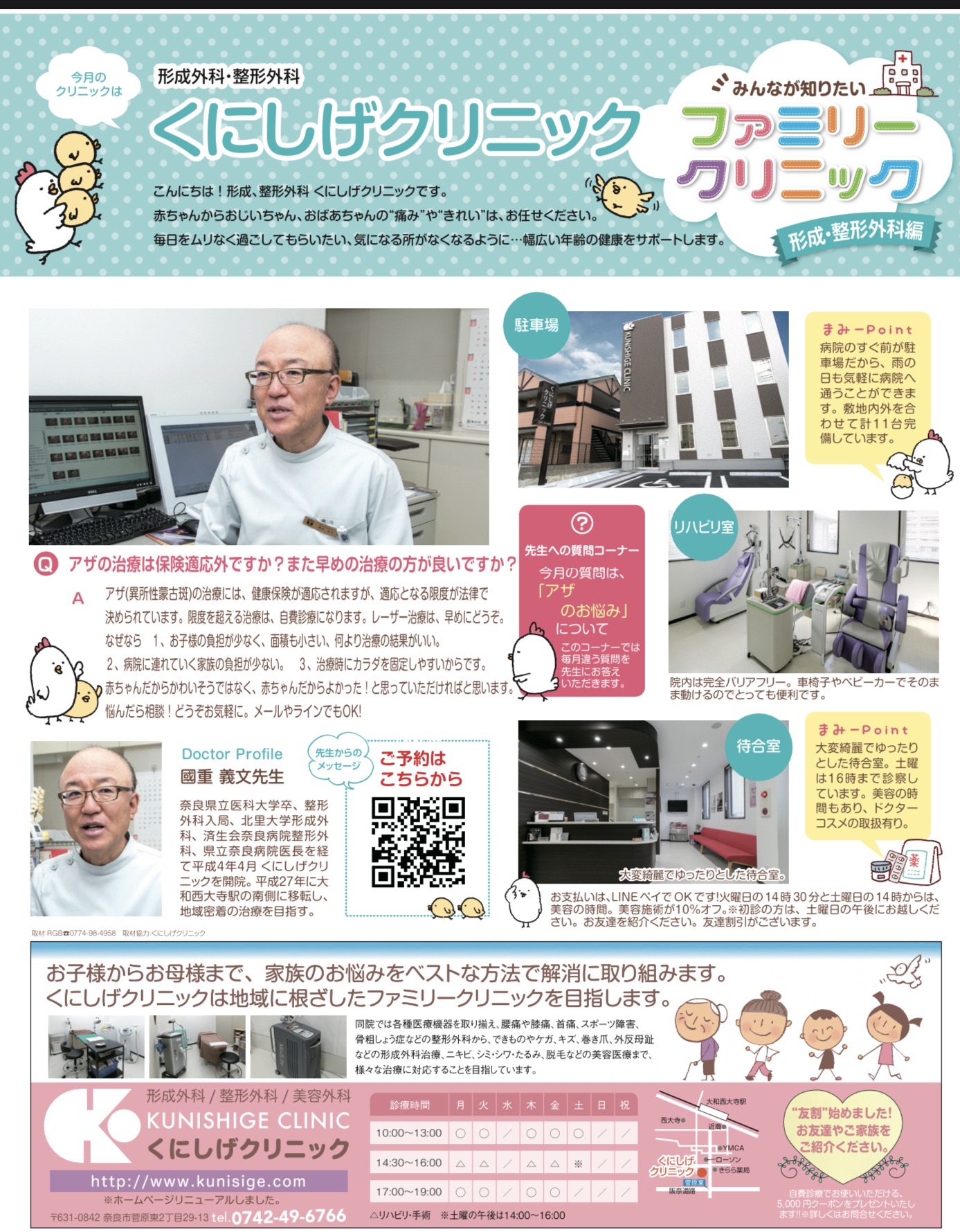 奈良県奈良市にある「くにしげクリニック」は地域に根差した医療を目指し、美容整形や美容外科、整形外科、形成外科診療を行っているお子様からお年寄りまで地域に根ざしたファミリークリニックです。