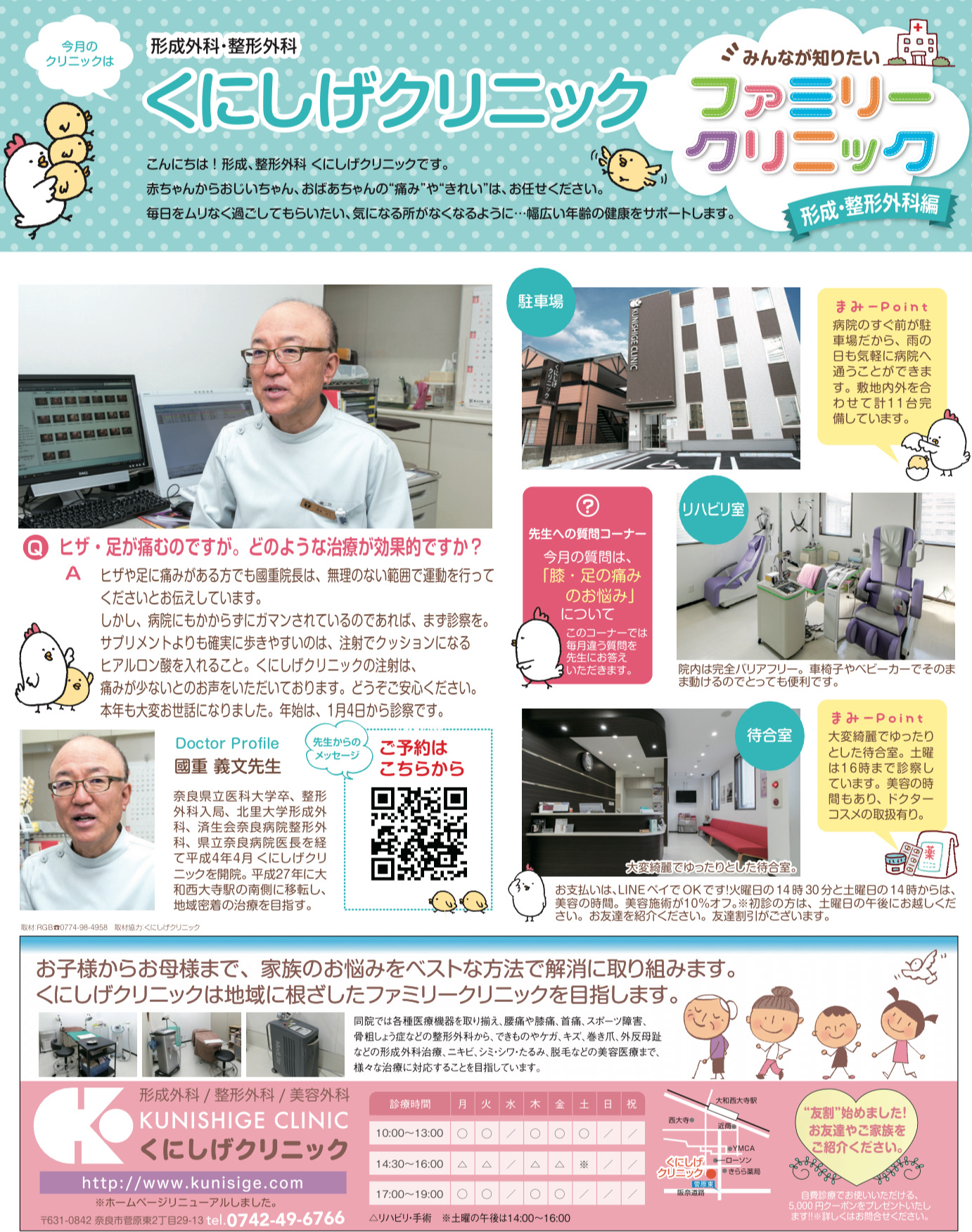 奈良県奈良市にある「くにしげクリニック」は地域に根差した医療を目指し、美容整形や美容外科、整形外科、形成外科診療を行っているお子様からお年寄りまで地域に根ざしたファミリークリニックです。