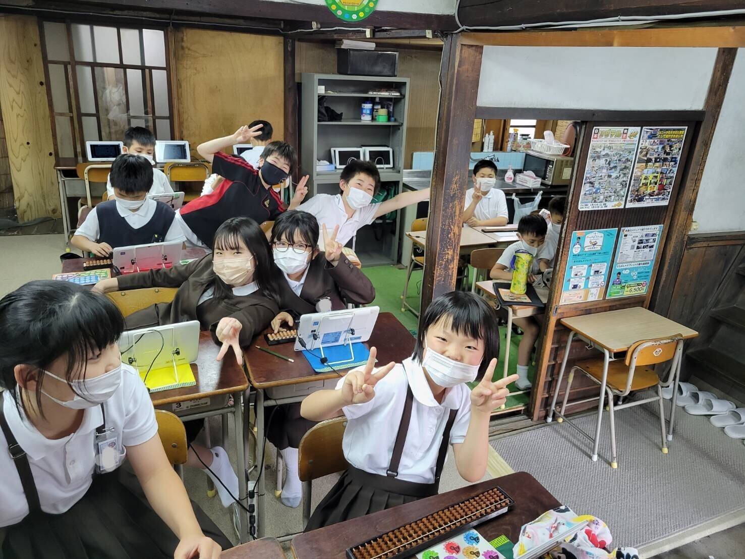 同じ教室で時間を区切って授業を行っているので、