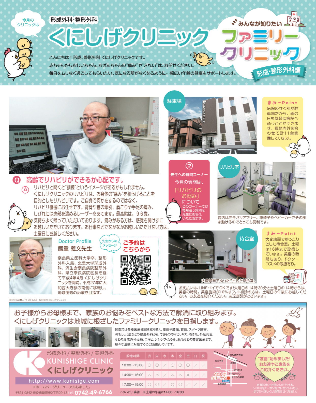 奈良県奈良市にある「くにしげクリニック」は地域に根差した医療を目指し、美容整形や美容外科、整形外科、形成外科診療を行っているお子様からお年寄りまで地域に根ざしたファミリークリニックです。