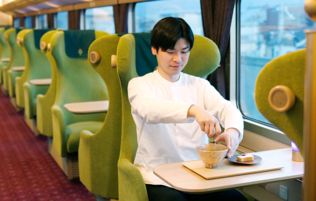 奈良にまつわる「手習い」を、旅先で楽しんでみませんか?茶道発祥の地・奈良。そんなお茶とゆかりの深い奈良旅のはじまりに、茶道体験を。茶道ブランド「茶論」講師の手ほどきのもと、あをによし車内で自身でお抹茶を点てられるそう。ならまちの「奈良御菓子製造所 ocasi」謹製のチーズケーキとあわせて楽しめます。