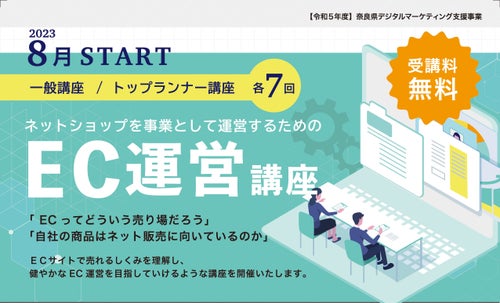 奈良県では、ネットショップを事業として運営していくためのEC運営講座を2023年7月より2024年2月まで開催いたします。