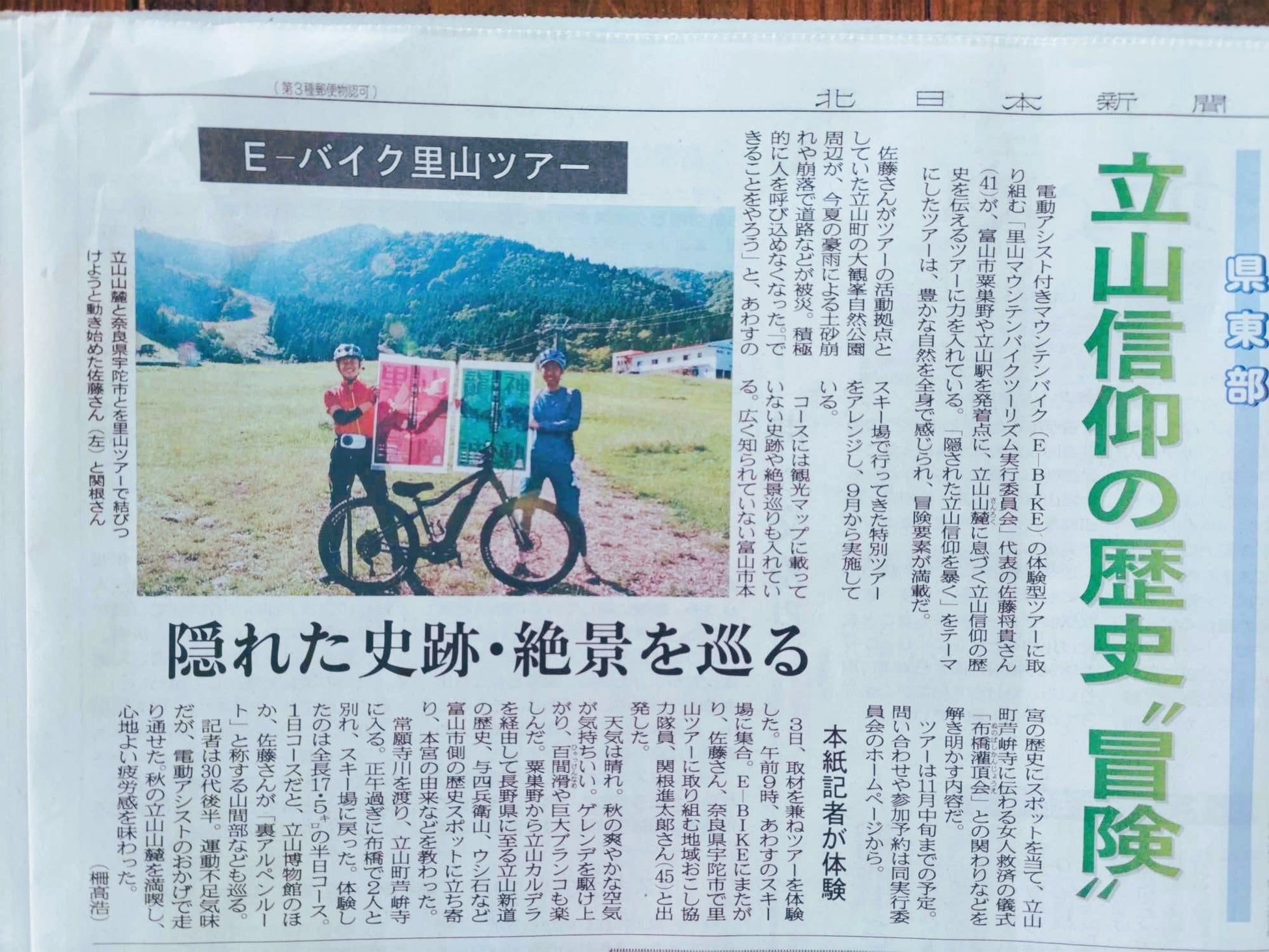 なんと、EBIKEによる宇陀と立山の里山同盟を、10月4日の北日本新聞さんにも掲載頂きました!!!