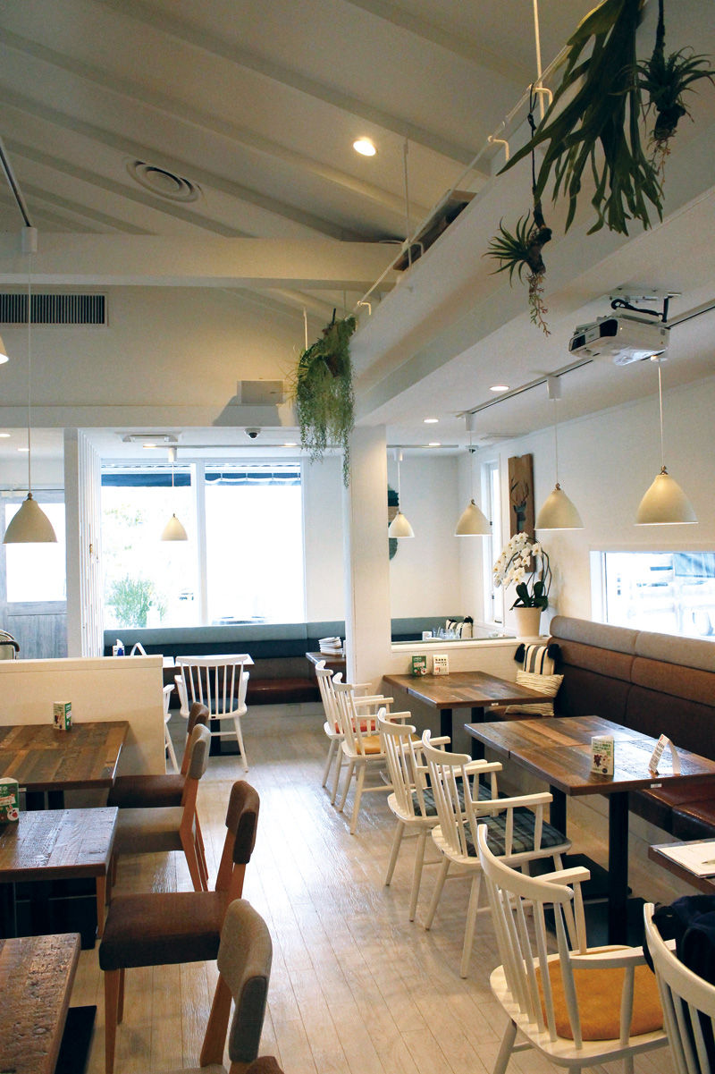 三角屋根の白い建物を取り囲む木々、新大宮駅から徒歩15分のアーバンナチュラルなカフェ「ナナイロテラス」さん。お店のコンセプトのひとつ“地産”を大切に、奈良の自然で育った食材を使用するイタリアンや、パティシエ手作りのスイーツがカジュアルな価格で楽しめる。また、ベビーチェアの貸出や、ベビーカーでの入店をはじめ、お子様にはおもちゃのプレゼントなど嬉しいサービスも充実。
